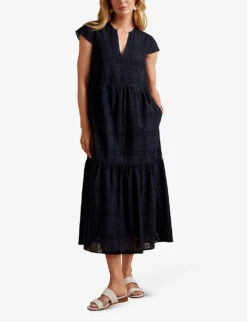 Geometric-embroidered Tiered Organic-cotton Midi Dress