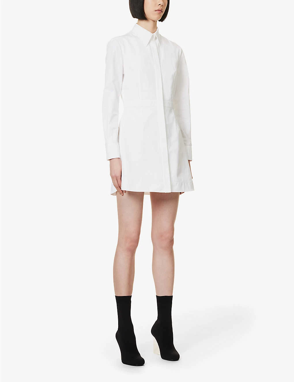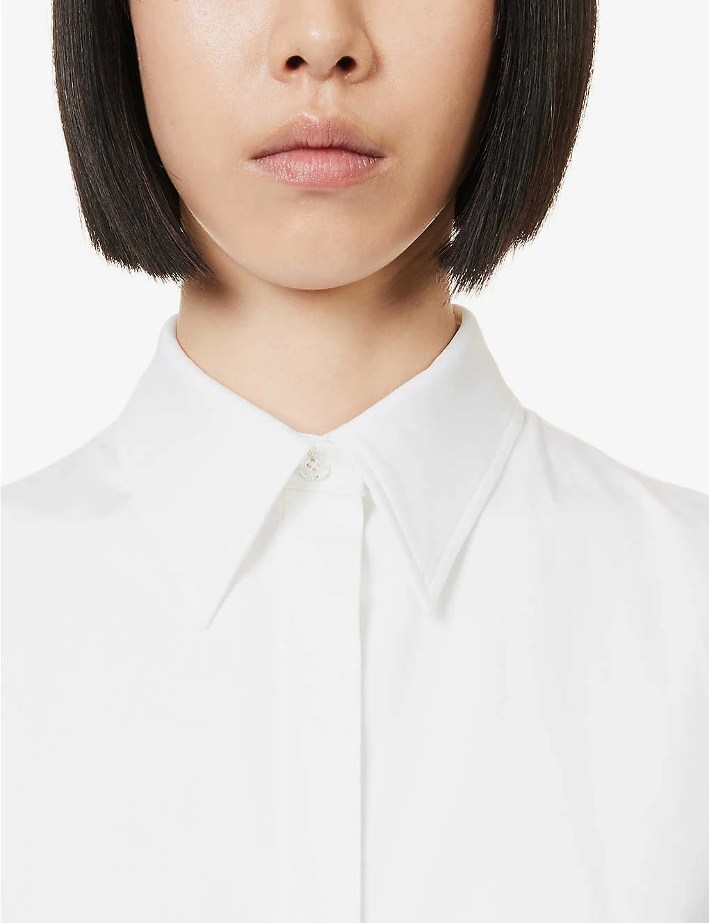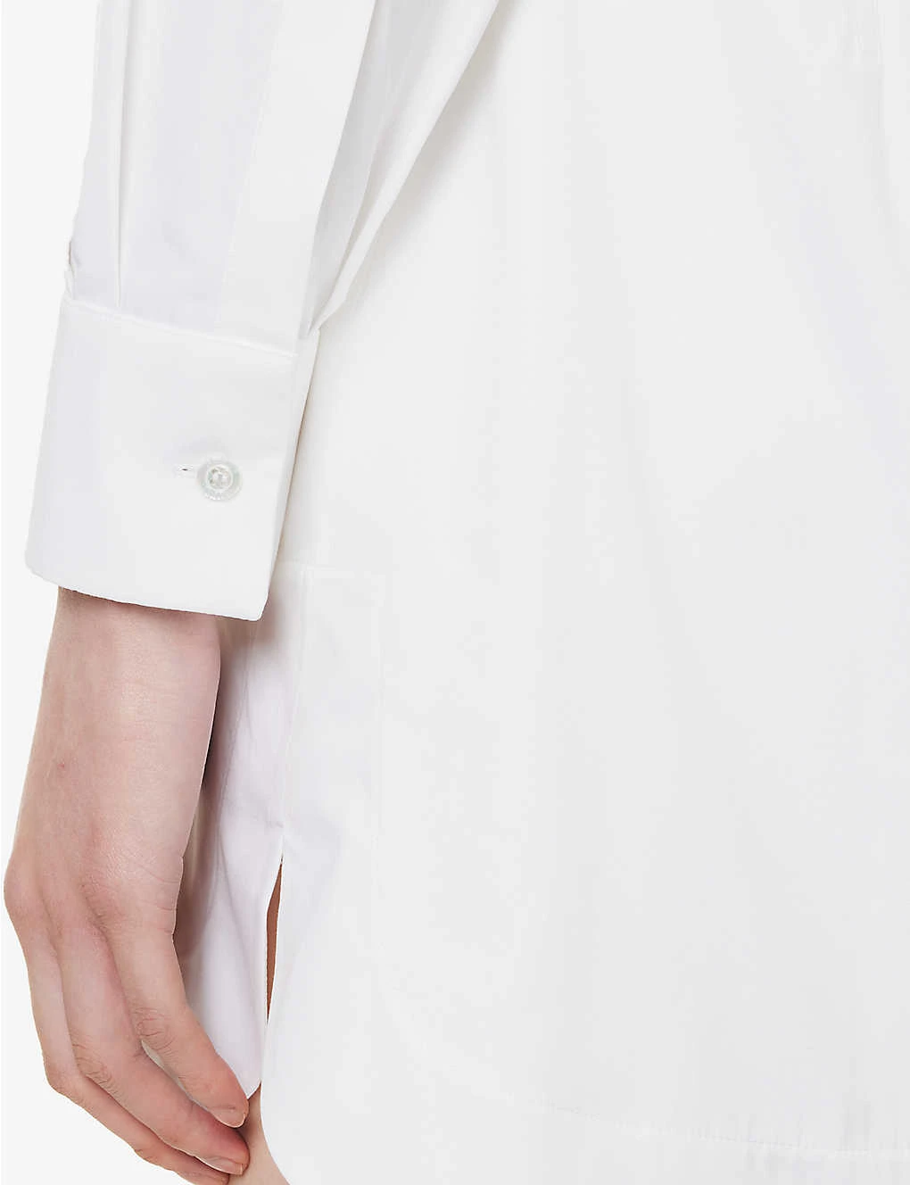 - Regular fit, collar, long sleeves, buttoned sleeve hems, darts at front and back, flared hem, branded pearlescent buttons