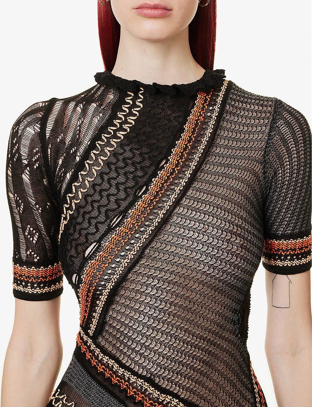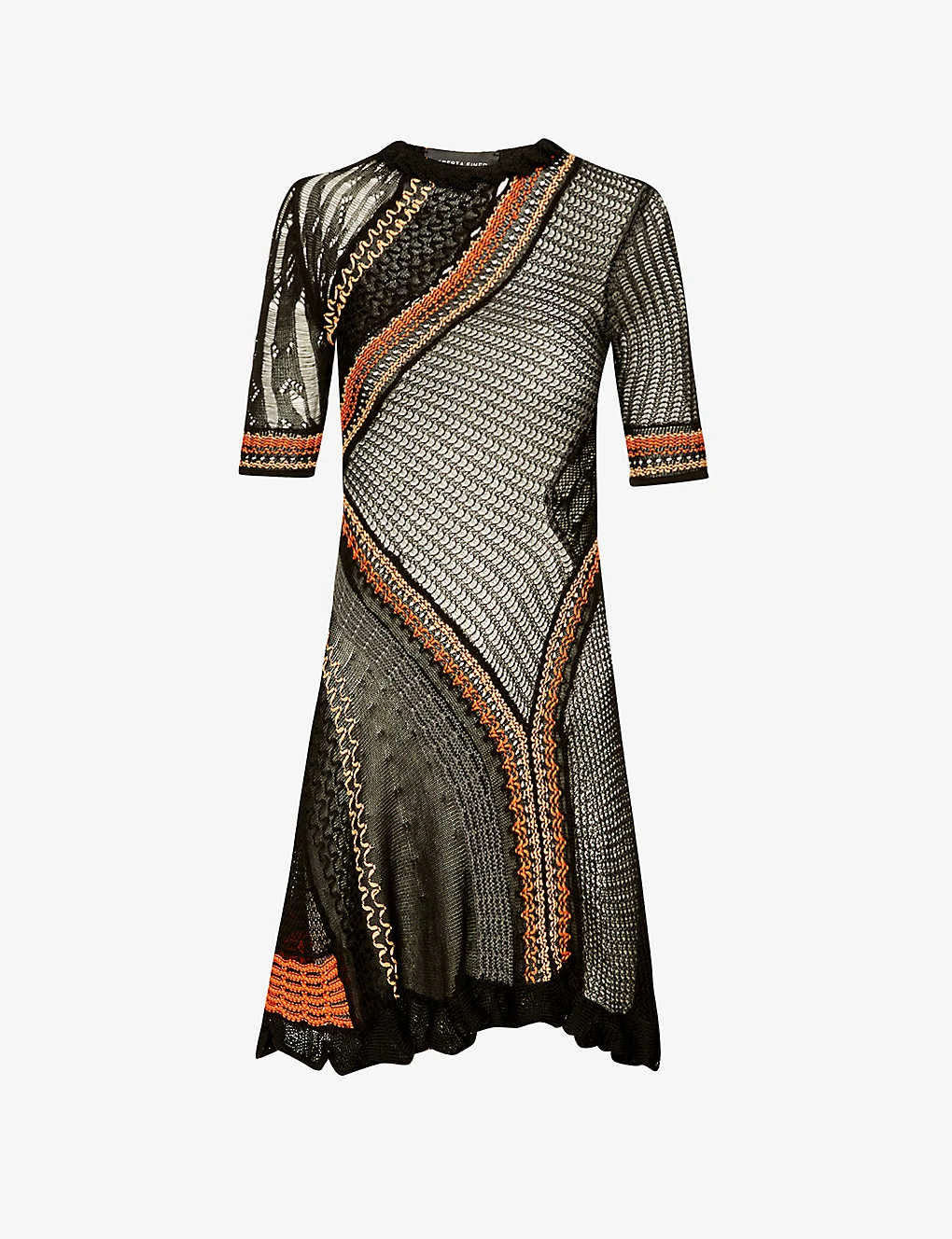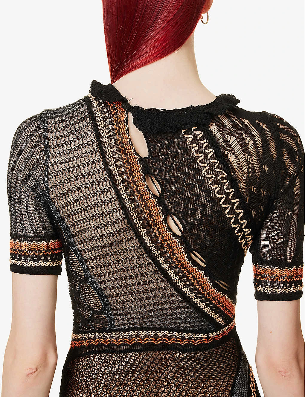 - Slim fit, round neckline, short sleeves, hand crocheted, flared skirt