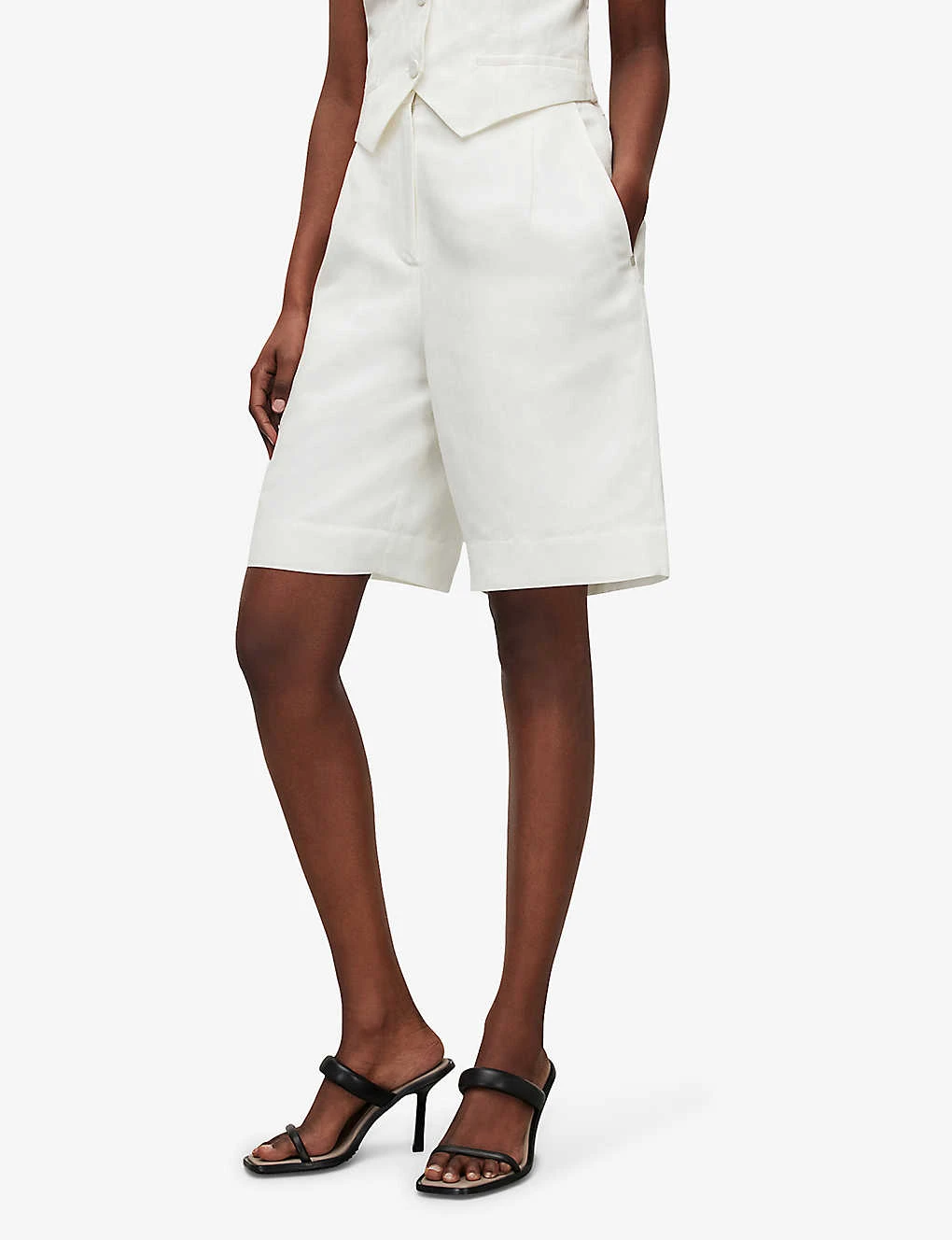 AllSaints Petra Tailored Front-pleat Linen-blend Shorts