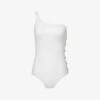 - Bottom: Mid-rise, elasticated waistband, terry texture