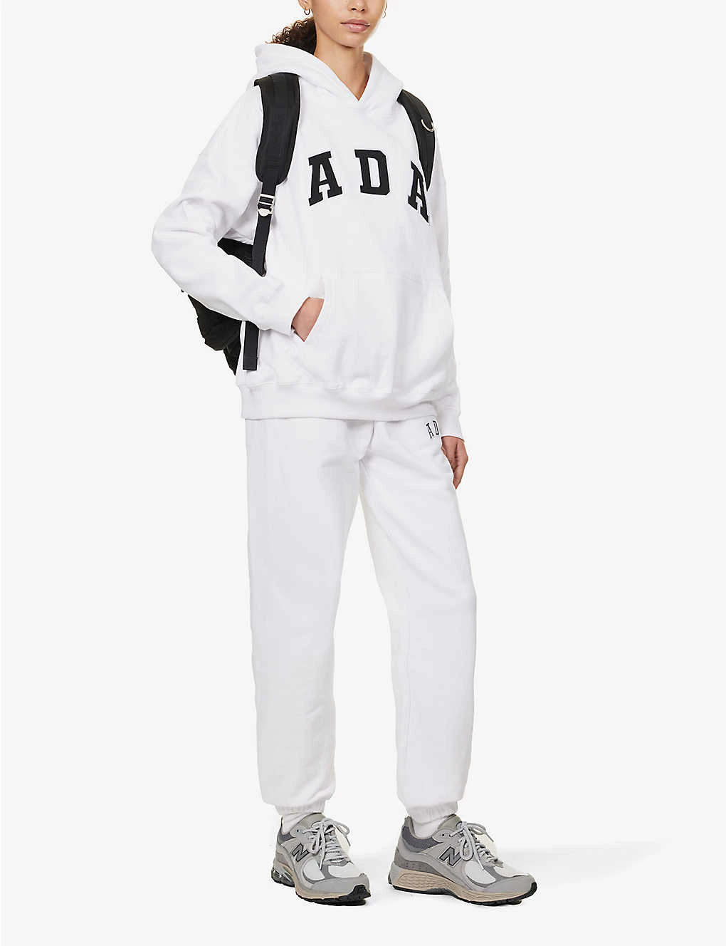 - Relaxed fit, mid-rise, tapered leg, drawstring elasticated waistband, two slip pockets at front, brand embroidery at front, patch pocket at back, silver-toned hardware, elasticated hems