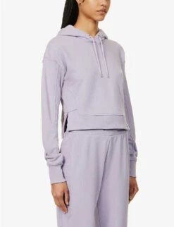 - Boxy fit, drawstring hood, dropped shoulders, long sleeves, brand patch at front, all-over ribbed panels