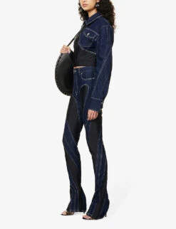 - Slim-fit, mid-rise, flared, cropped, belt loops, five pockets, branded gold-toned hardware, tonal stitching