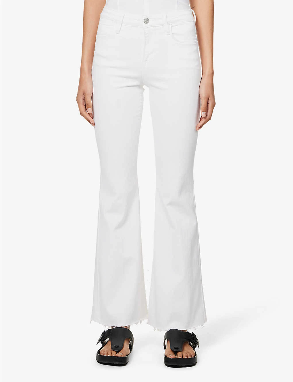 FRAME Le Easy Flare Raw-hem Flared High-rise Stretch-denim Jeans