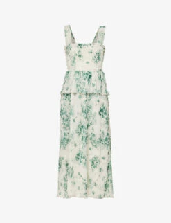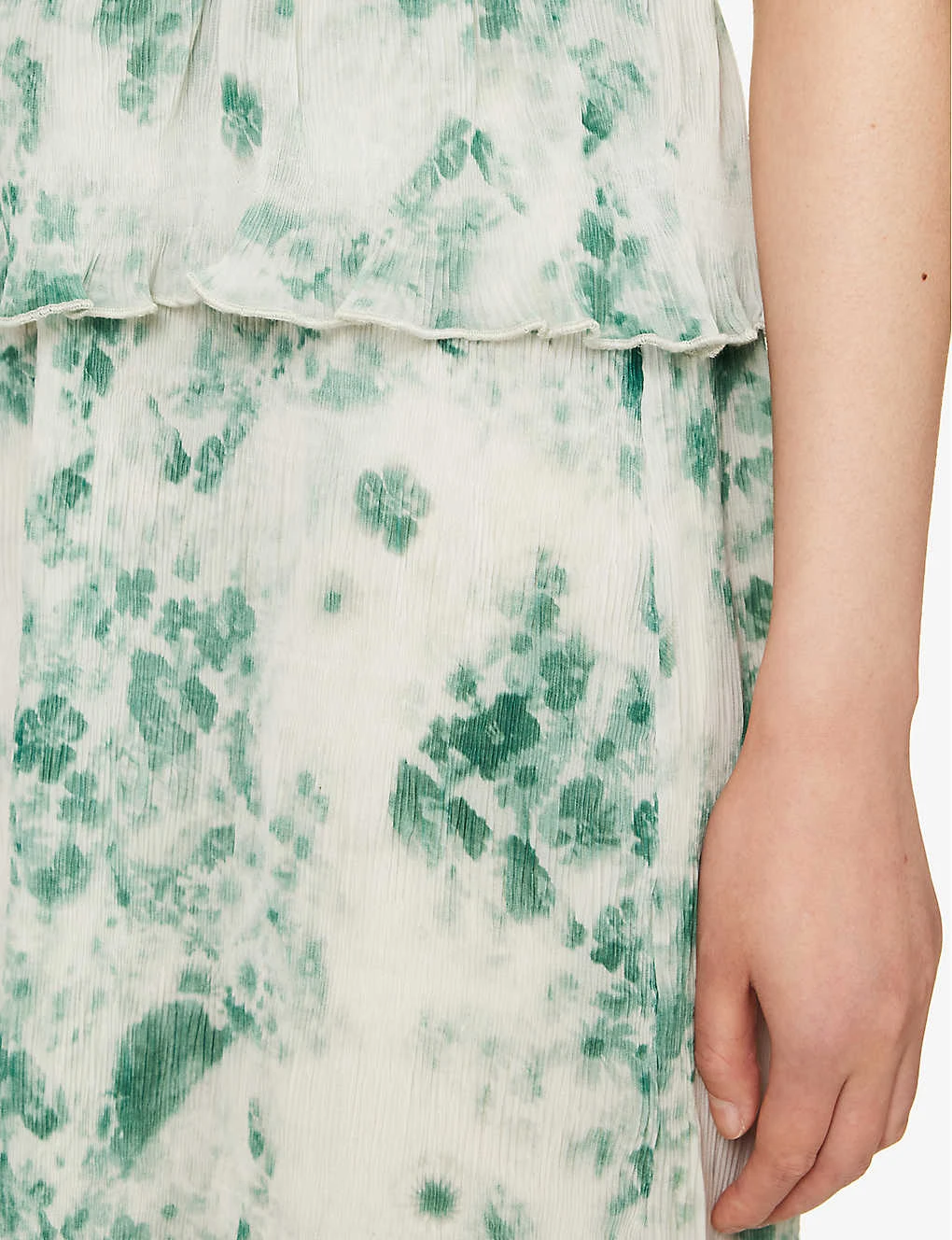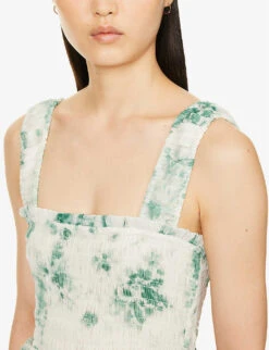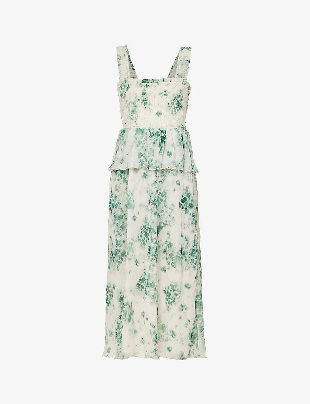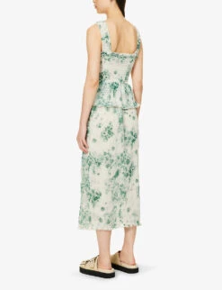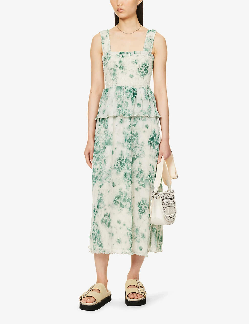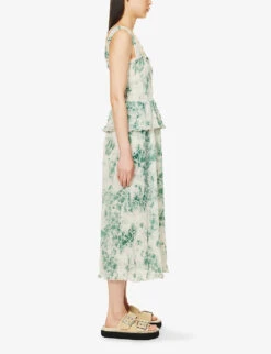 Ganni Abstract Floral-print Shirred-bodice Recycled-polyester Midi Dress