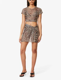 GOOD AMERICAN Leopard-print Semi-sheer Mesh Recycled Polyester-blend T-shirt