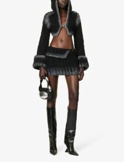 - Exposed zip fastening at front