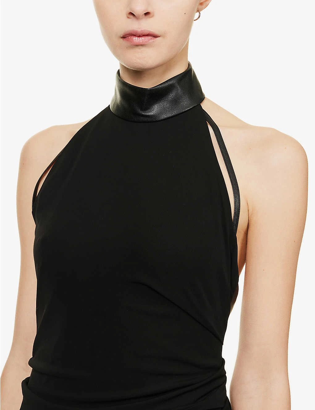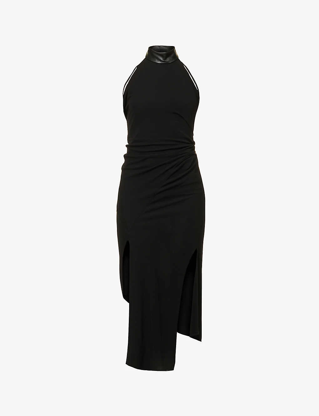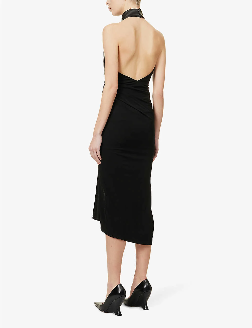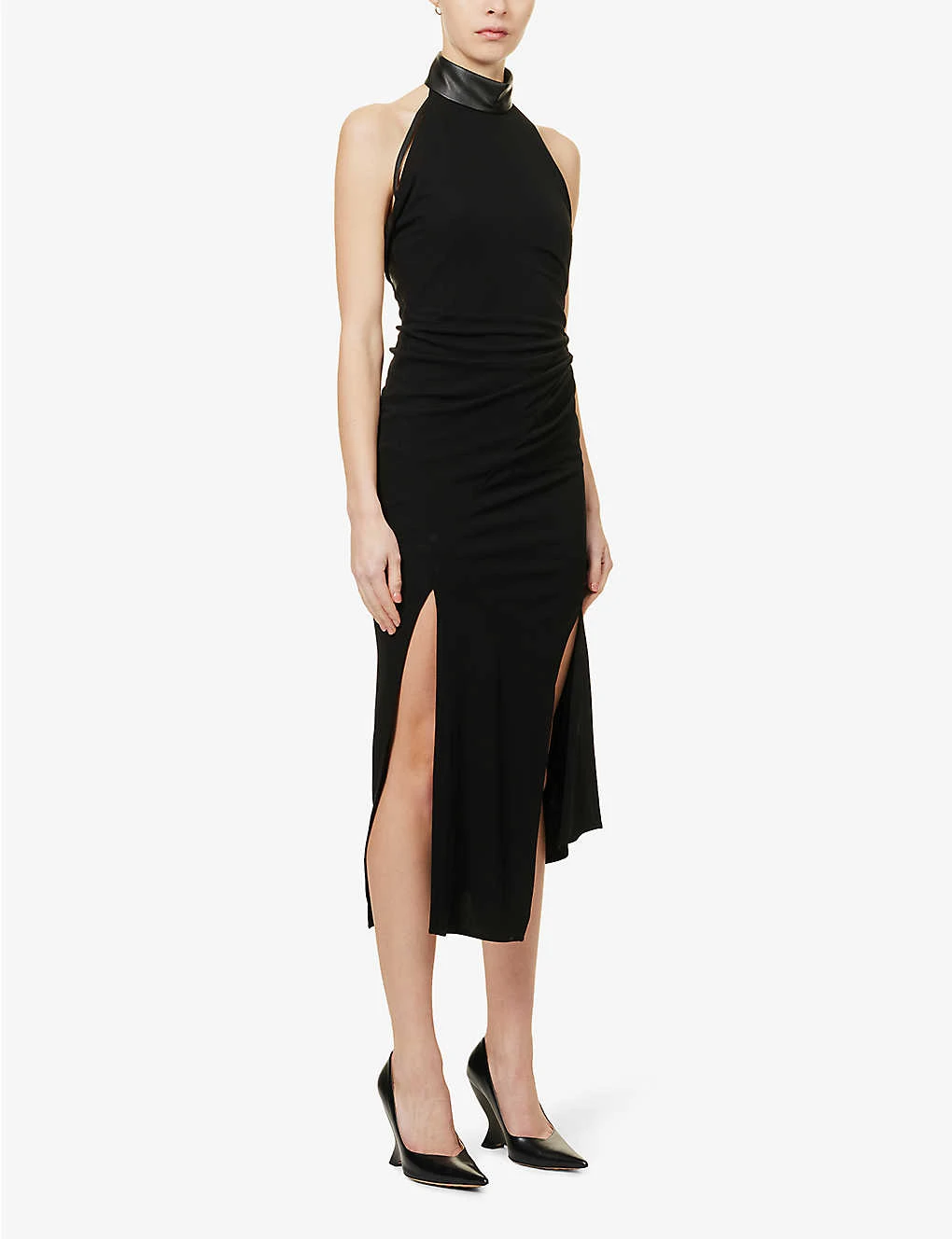 Helmut Lang Slim-fit High Choker-neck Woven Midi Dress