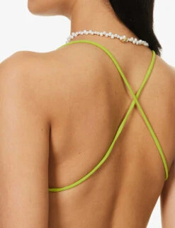 - Slim fit, cowl neck, crossover shoulder straps, low back, all-over velour pattern, fully lined