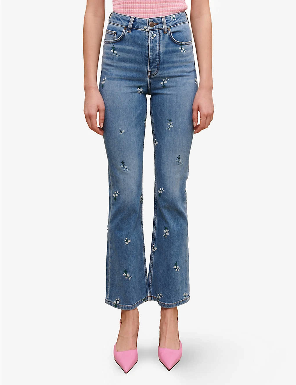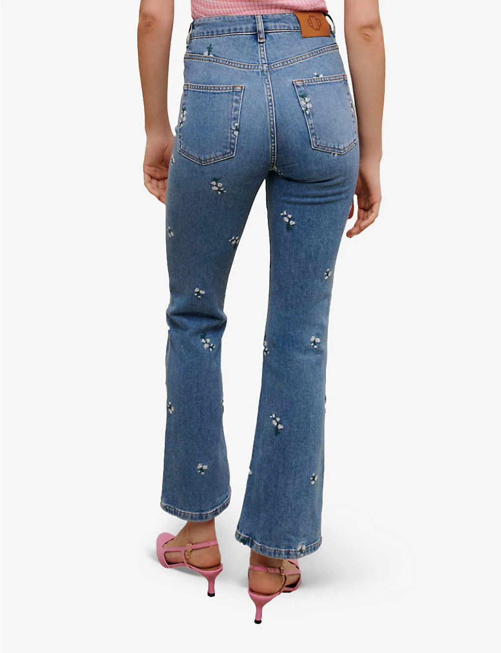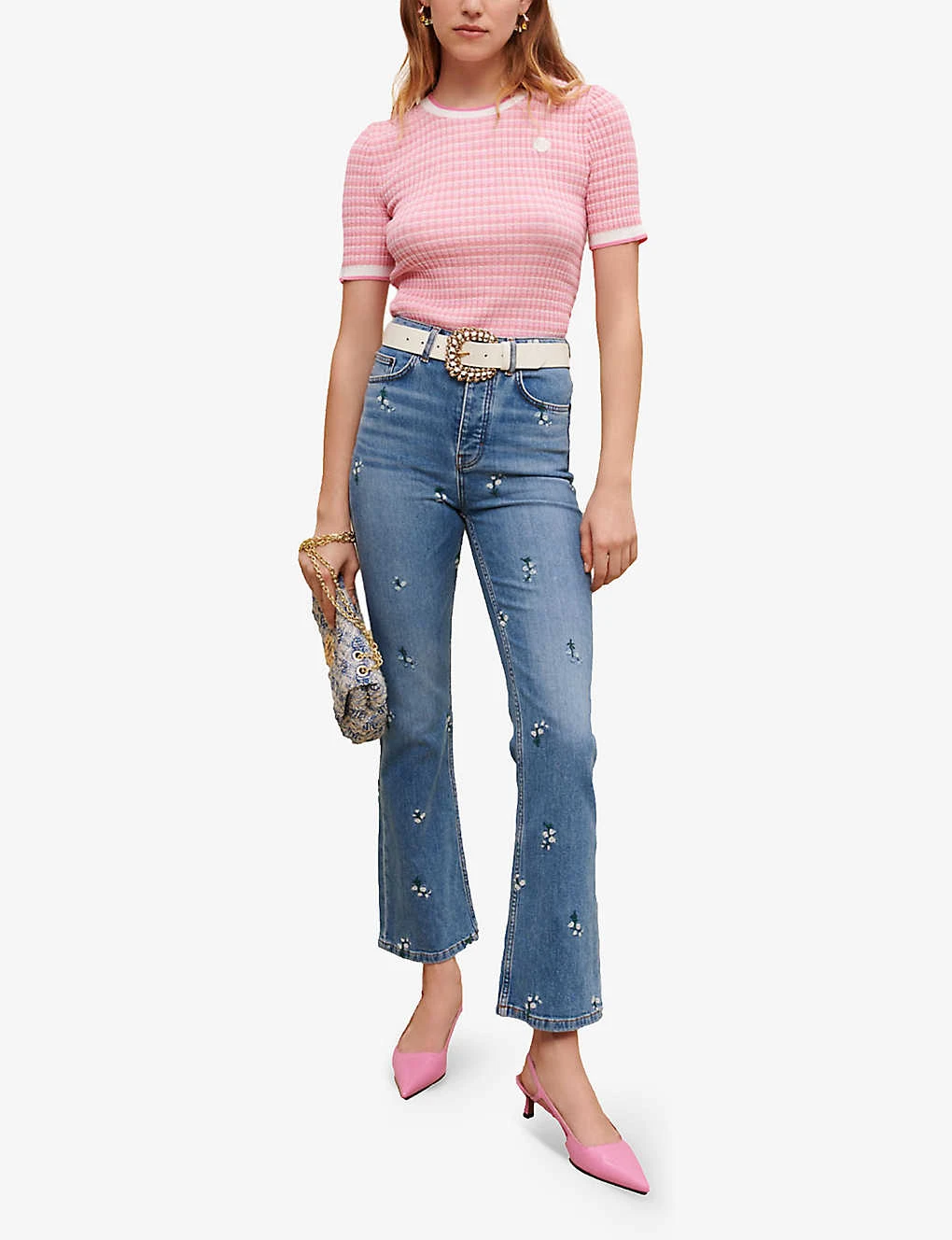 Maje Floral Crystal-embellished Flared High-rise Stretch-denim Jeans