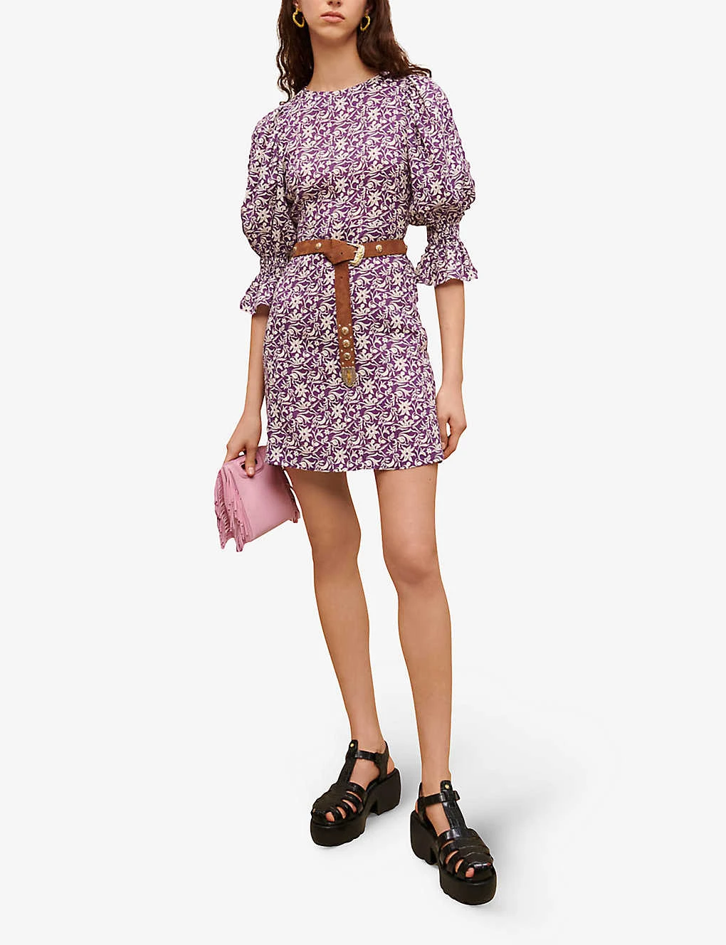 Maje Roniriqua Floral-print Linen-blend Mini Dress