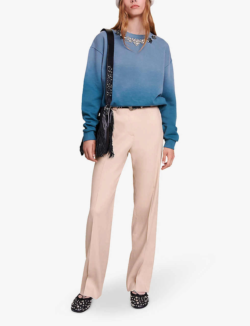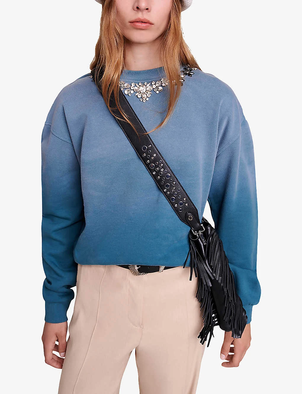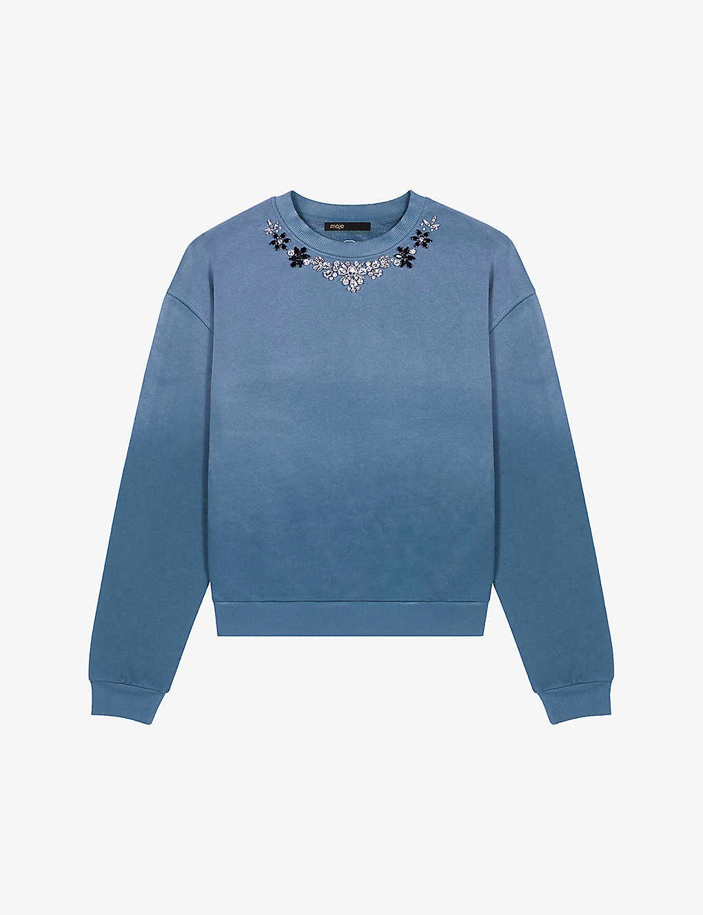 Maje Tonix Gradient Jewel-embellished Cotton-jersey Sweatshirt
