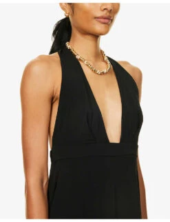 - Regular-fit, halterneck, V-neck, darts at chest, split sides