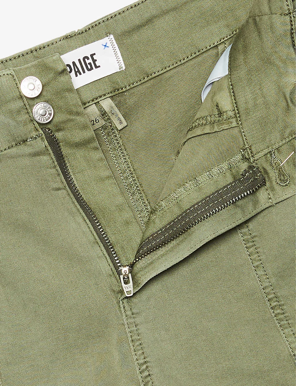 - Regular fit, mid-rise, structured waistband with belt loops, two slip pockets at front, darts at back, two patch pockets at back, brand patch at back, branded silver-toned hardware, folded hems