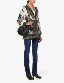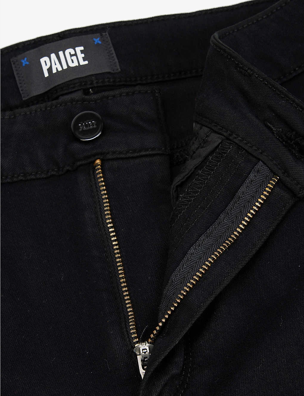 - Exposed button and concealed zip-fly fastenings at front