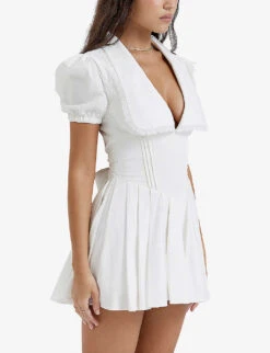 Piera Oversize-collar Puff-sleeve Stretch-cotton Mini Dress