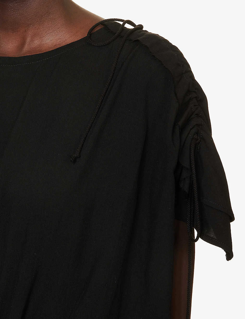 - Regular fit, round neckline, short sleeves, ruched drawstring trims, asymmetric hem