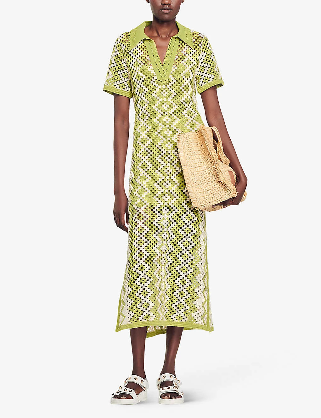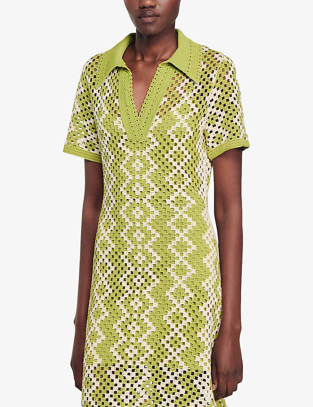 Sandro Oona Crochet-pattern Cotton-knit Midi Dress