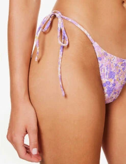 Reiss Daniella Floral-print Side-tie Stretch-woven Bikini Bottoms