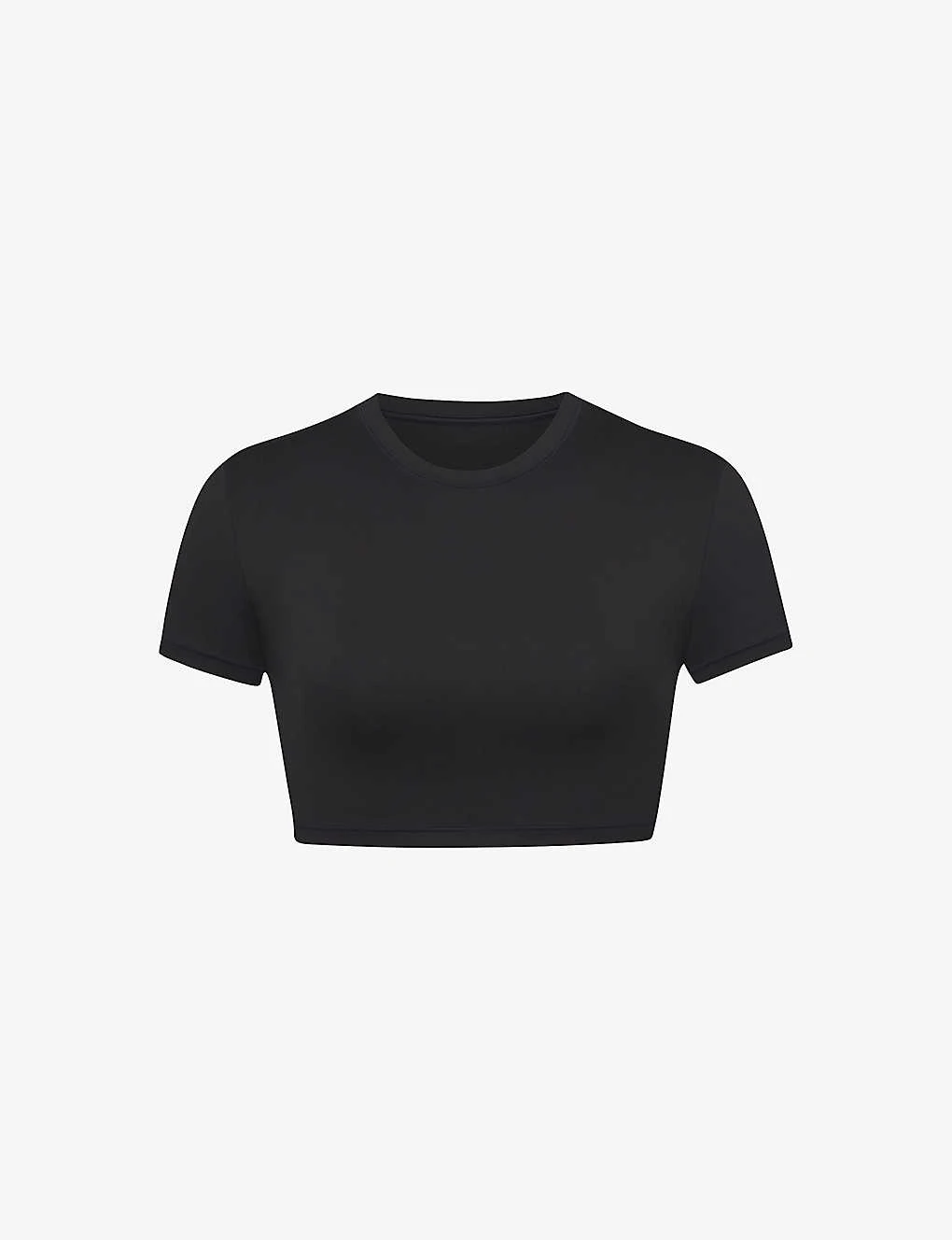 - Slim fit, round neck, short sleeves, cropped