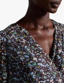 Ted Baker Cherela Floral-print Balloon-sleeved Recycled-polyester Mini Dress
