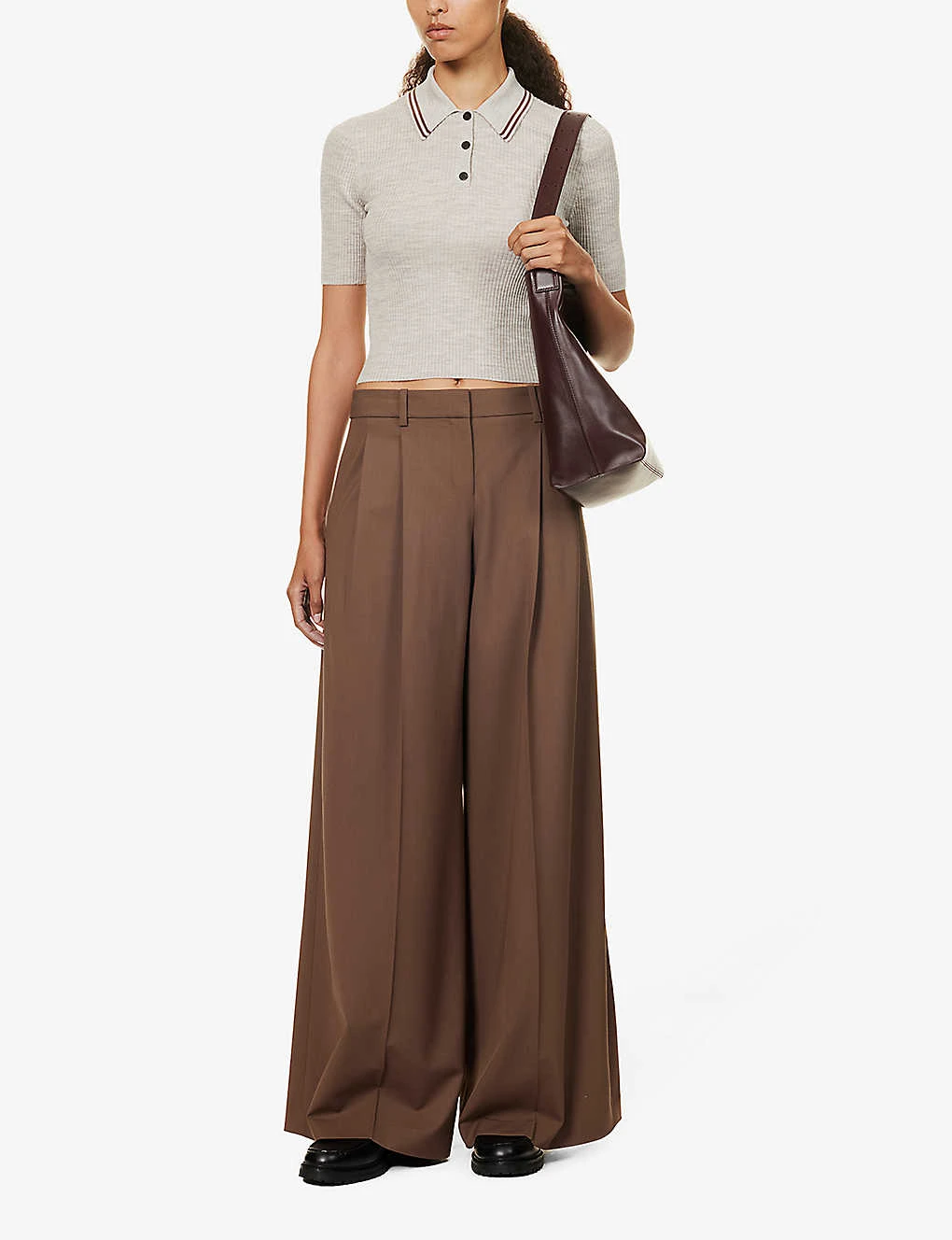THEORY Polo-collar Contrast-trim Wool-blend Top