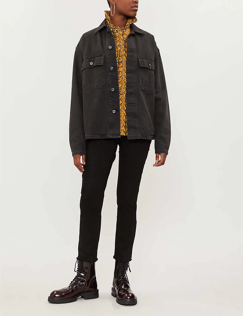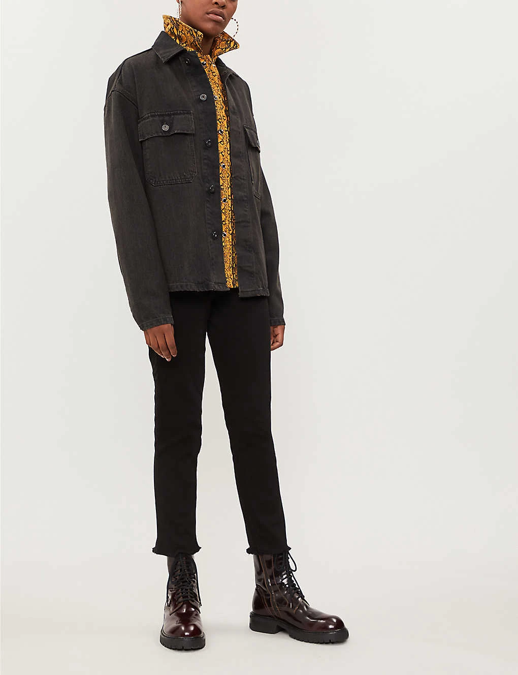 Zadig & Voltaire stretch-denim jeans Exposed button and concealed zip-fly fastening at front High-rise, skinny, cropped, belt loops, two zip fastening slip pockets at front, non-functioning jet pocket at front, buckle at side, branded silver-toned hardware, branded leather patch at back waistband, v-shaped yoke at back, patch pockets at back, raw hem 98% cotton, 2% elastane Machine wash True to size Size 28: Rise 10″”, inside leg 26.6″”, leg opening 13″” Model is 5ft7” and wears a size 28
