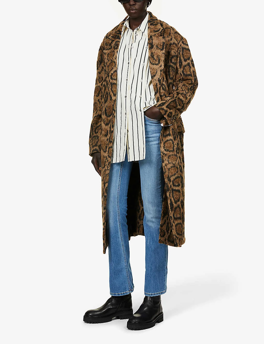 - Exposed button and concealed zip-fly fastenings at front