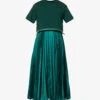 - Regular fit, high neck, long puff sleeves, concealed zip at sleeve hems, belt loops with detachable belt, floral pattern, broderie trims, flared hem